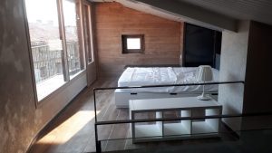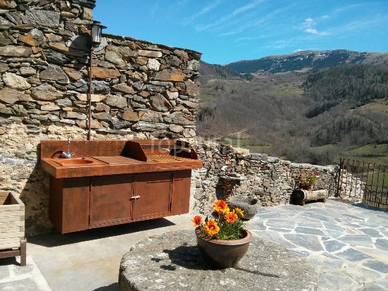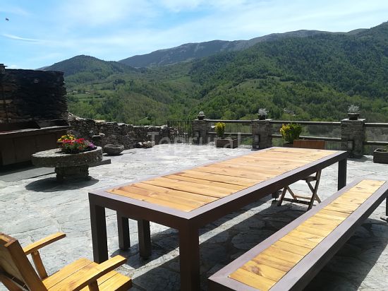 Places: Consta de tres plantes, a la planta baixa hi ha la cuina el menjador-estança, i un bany complet amb rentadora, a la planta primera un rebedor dona pas a dos dormitoris dobles amb un bany complet, a l’última planta una saleta amb vistes al Taga, obre pas a les dues habitacions sota la coberta, de dos i tres llits respectivament. La casa és equipada amb mobles antics i moderns, té calefacció central, televisió i mobles exteriors.